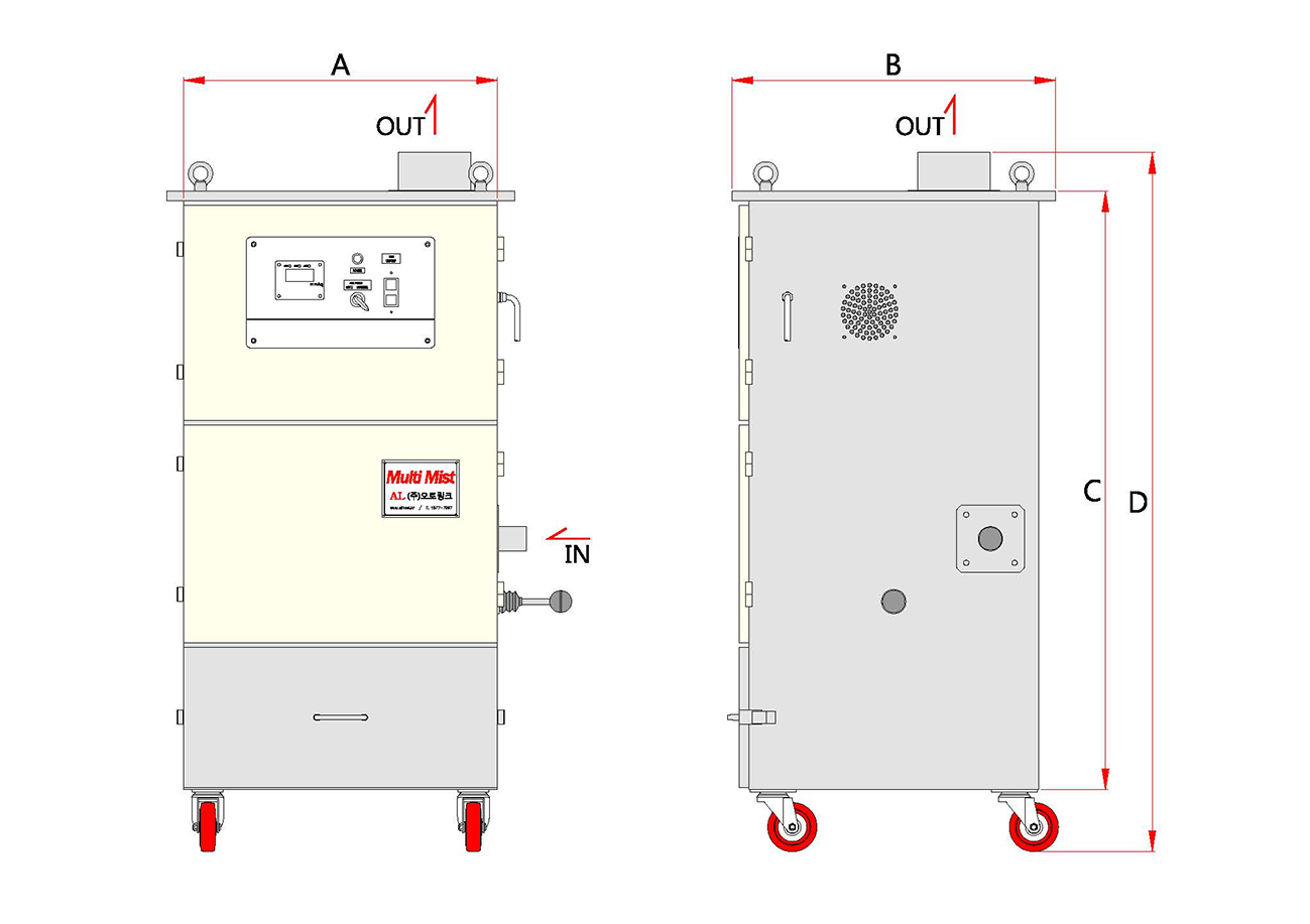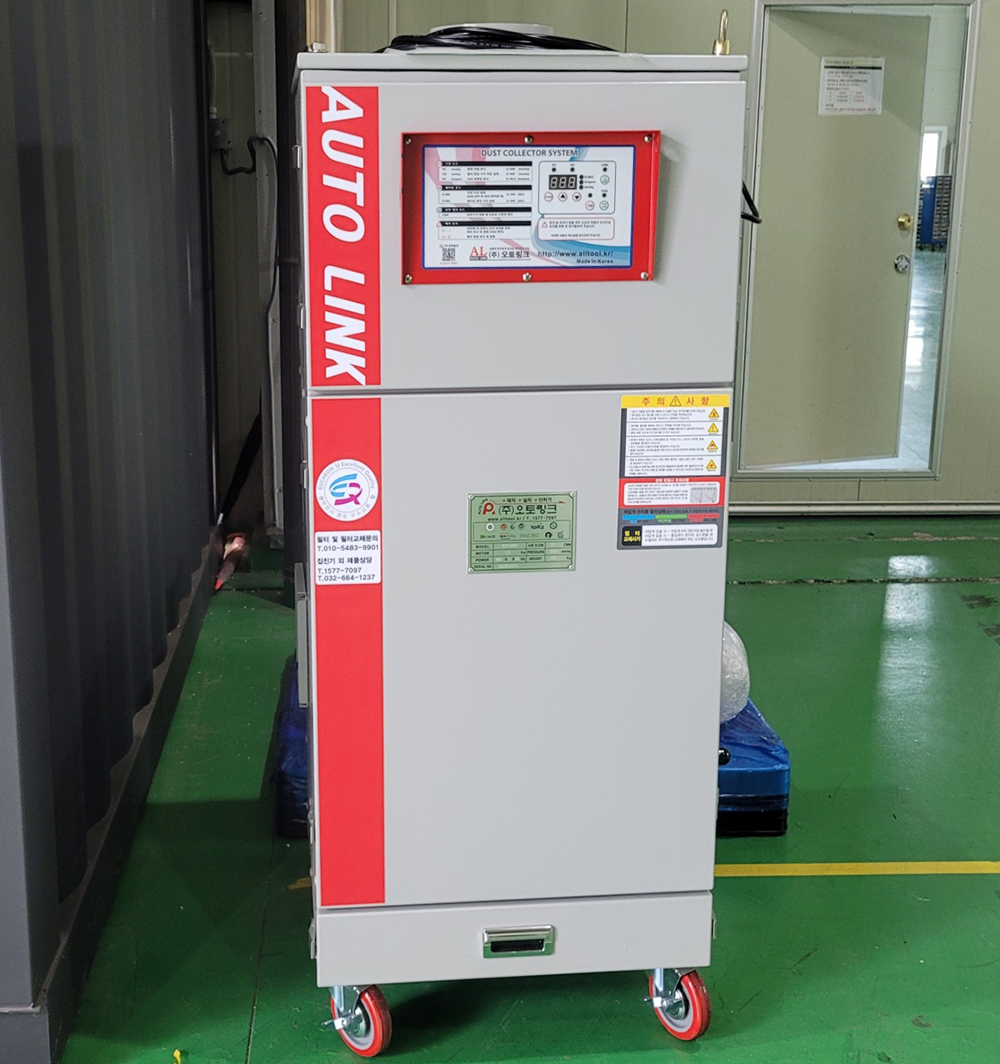 필터청소 후 탈리 된 분진은 하단의 서랍형 분진함에 모아지며 슬라이드 방식으로 간단히 탈착되어 분진배출에 용이함