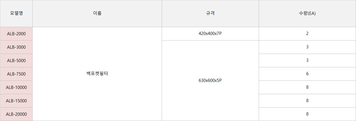 정전기 방지와 발수 기능을 갖춘 필터로, 먼지와 물기가 필터에 붙는 것을 방지하는 제전발수 포켓필터로 변경 가능함