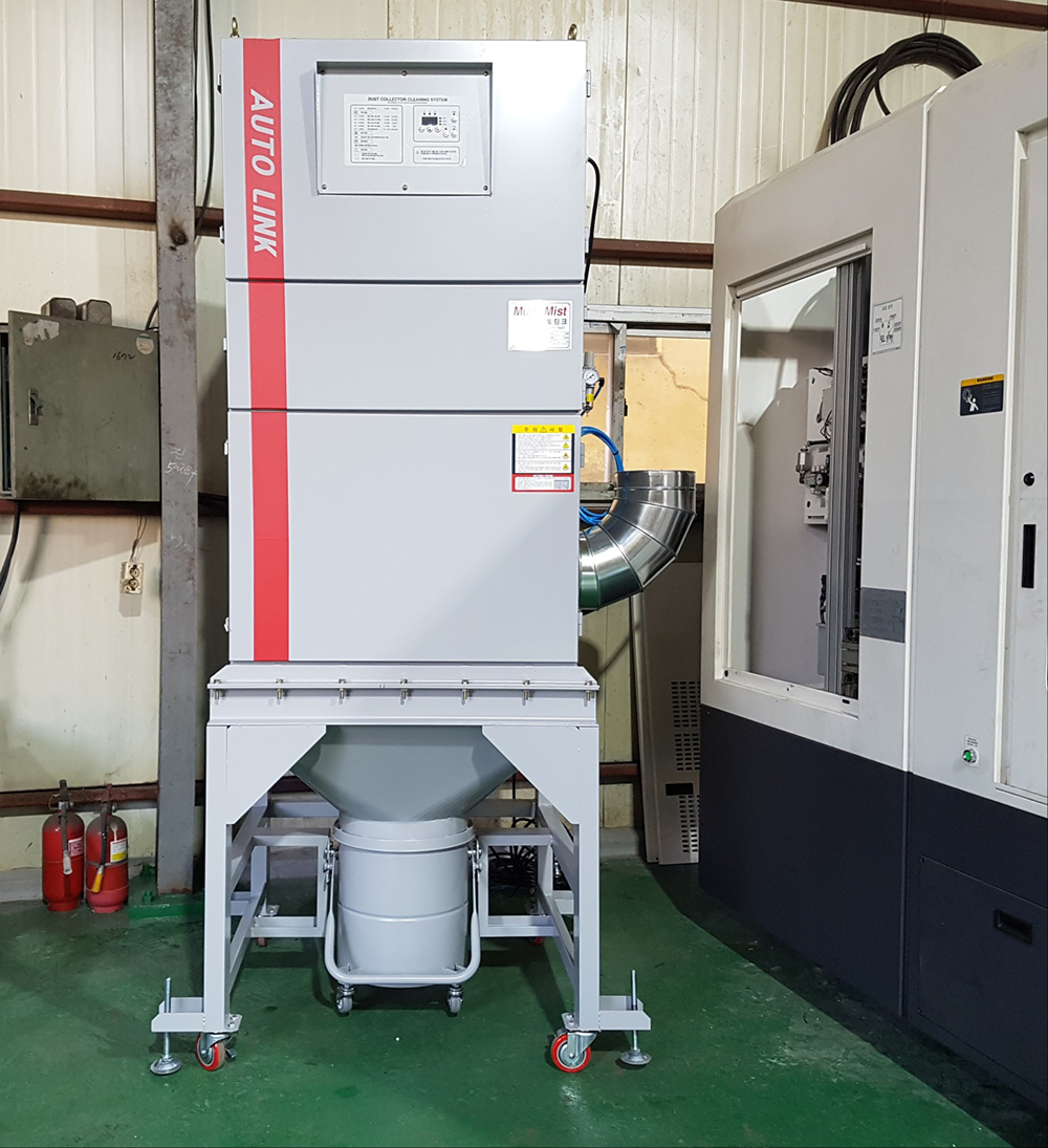 필터청소 후 탈리 된 분진은 하단의 서랍형 분진함에 모아지며 슬라이드 방식으로 간단히 탈착되어 분진배출에 용이함