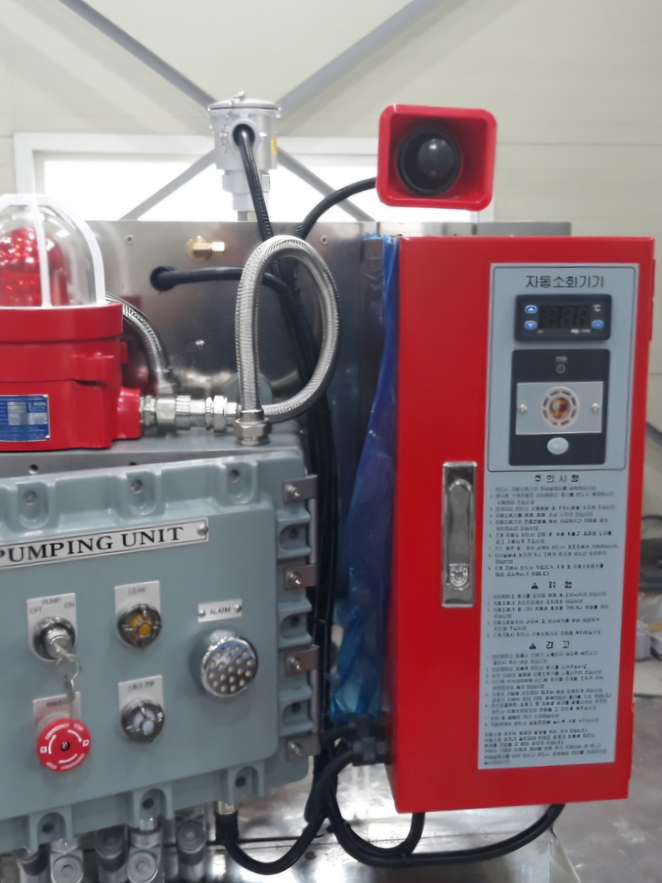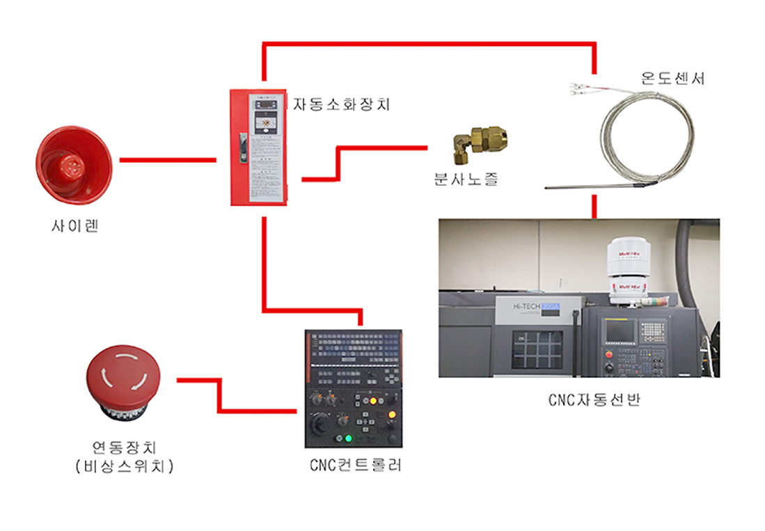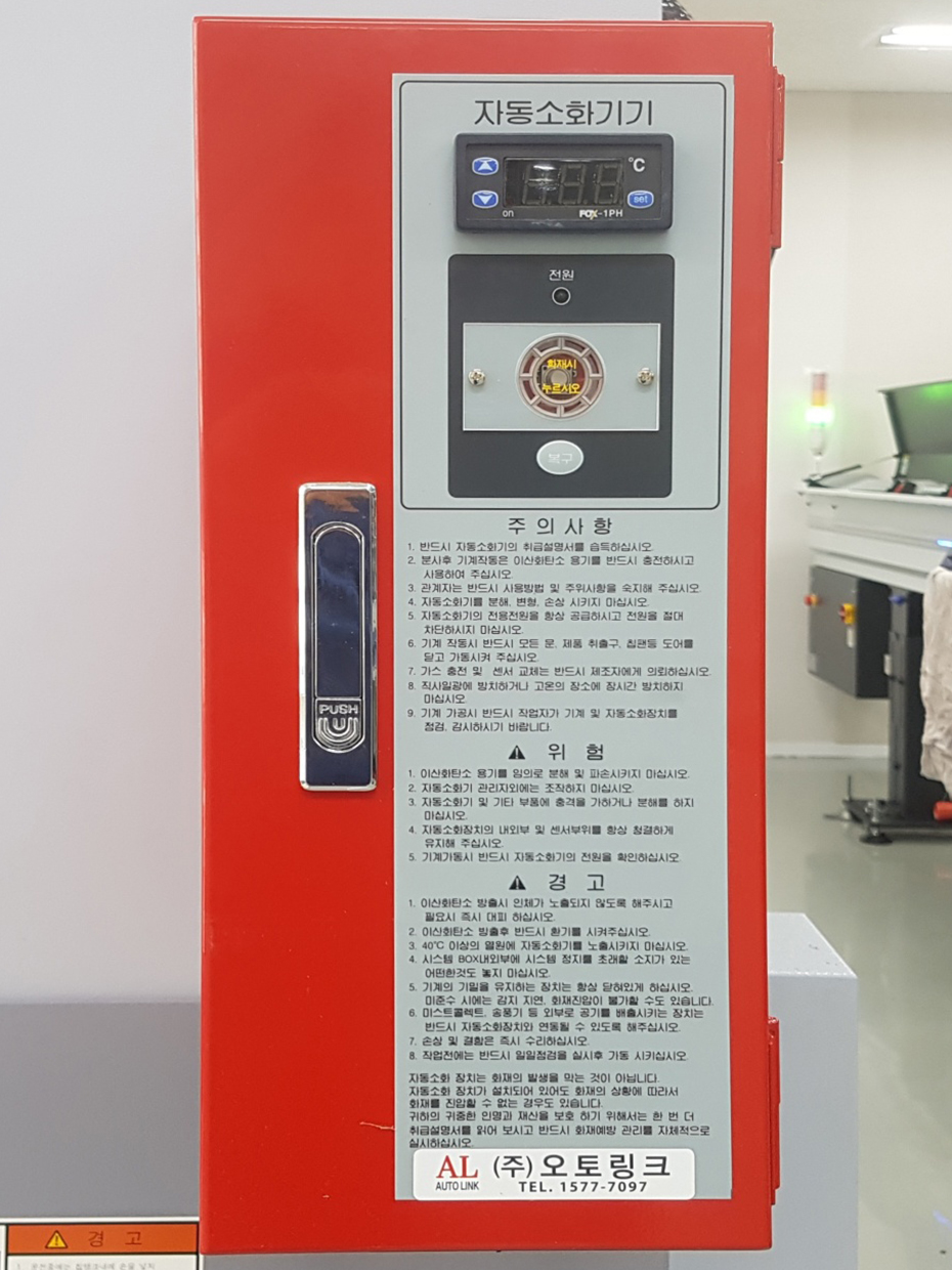 고압 CO2 소화제, 자동소화장치, CNC컨트롤러 연동, 화재를 초기에 진압